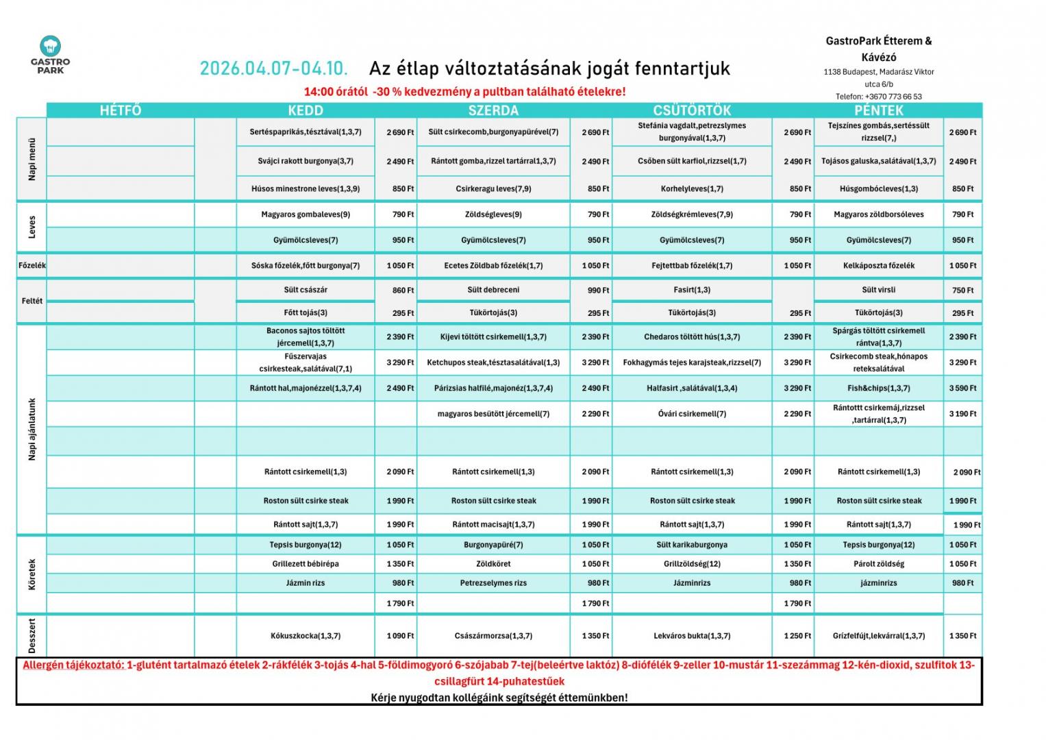 -30 % kedvezmény 14:00 óra után a pultban található ételekre